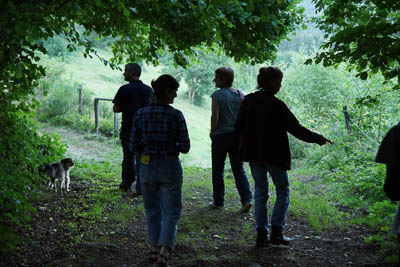 Le 10 juillet 2015, en fin de journée, plusieurs membres de l’association parcourent le sentier du Pré au Lait, attentifs à l’entrée en scène de chaque nouvelle plante ou arbuste, qu’ils s’appliquent ensuite à identifier. Situé à mi-pente sur le versant orienté au sud, à l’endroit donc, ce sentier relie les pâturages des fermes alentour. La présence d’un muret en blocs de granit atteste de l’ancienneté de ce passage, toujours fréquenté par un troupeau de laitières. Un sentier donc qui mérite encore son nom.